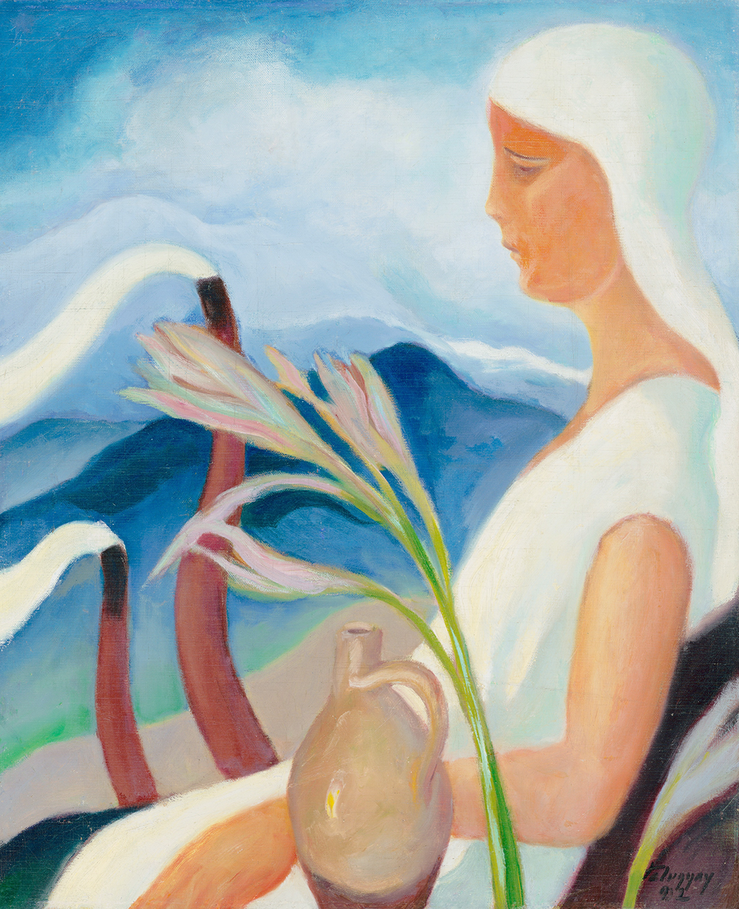 작품명: Girl in White with Factory Chimneys and Flowers (1932)